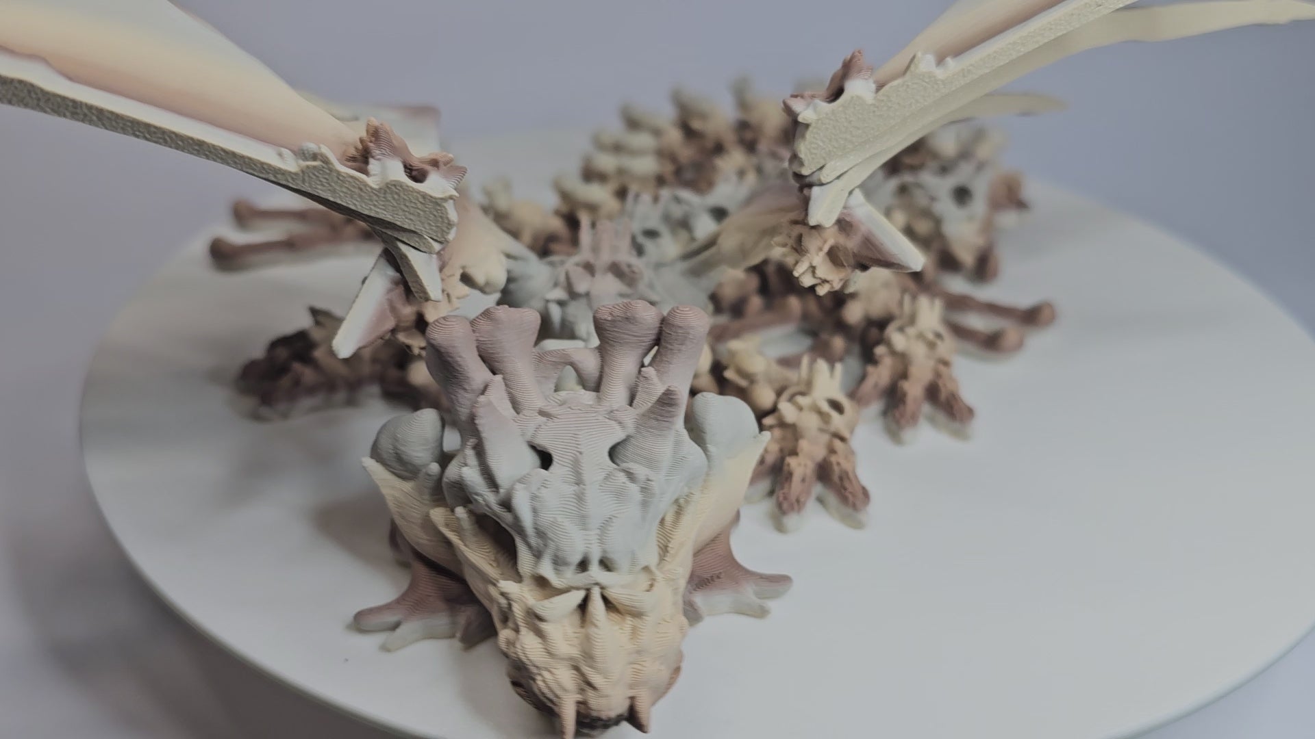 Der Knochen Drache ist ein 3D-gedrucktes Dekorationsobjekt mit markanter, skelettartiger Formensprache. Die beweglichen Gelenke ermöglichen unterschiedliche Haltungen und verleihen der Figur eine lebendige, zugleich archaische Präsenz – ruhig, wachsam oder kraftvoll inszeniert.